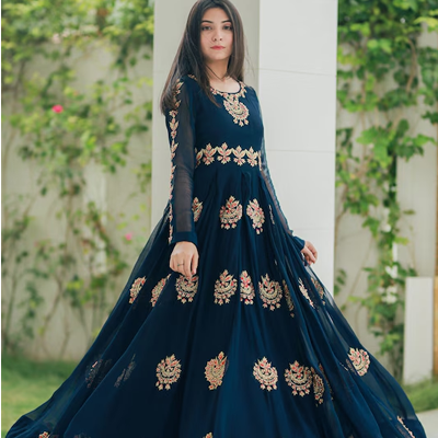 Women Blue & Gold-Toned Embroidered Semi-Stitched Dress Material